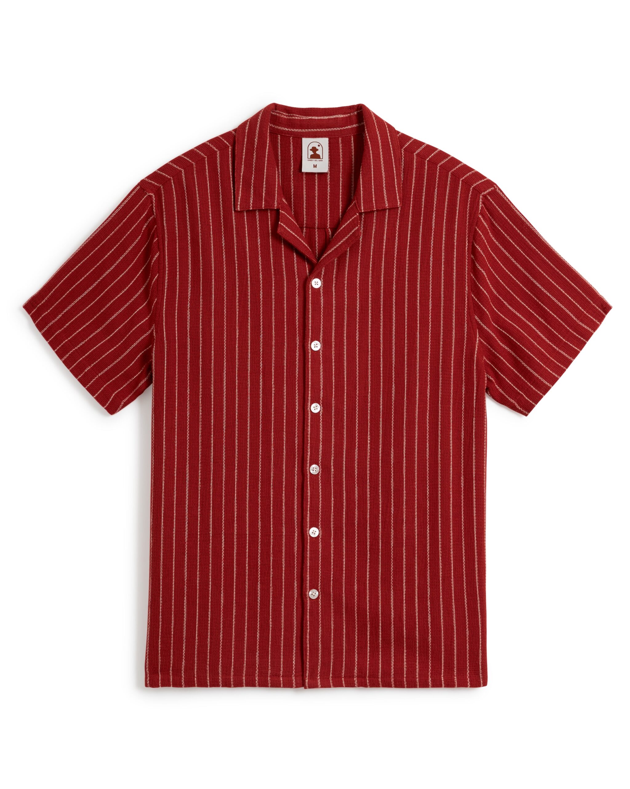 Notes of exotic spices suffuse the yarn dyed stripe canvas of the Palma Shirt – an equatorial essential best suited for the enjoyment of distant cantinas, the shade beneath the palapa at high noon, and the all-inclusive amenities of a five-star desert mirage. Here we’ve revisited certain Dandy staples, honing in on the finer details that make a great getaway shirt – soft burlap textured fabric and charming relaxed fit, camp collar, side vents, and tortoise shell buttons. Please wear responsibly.